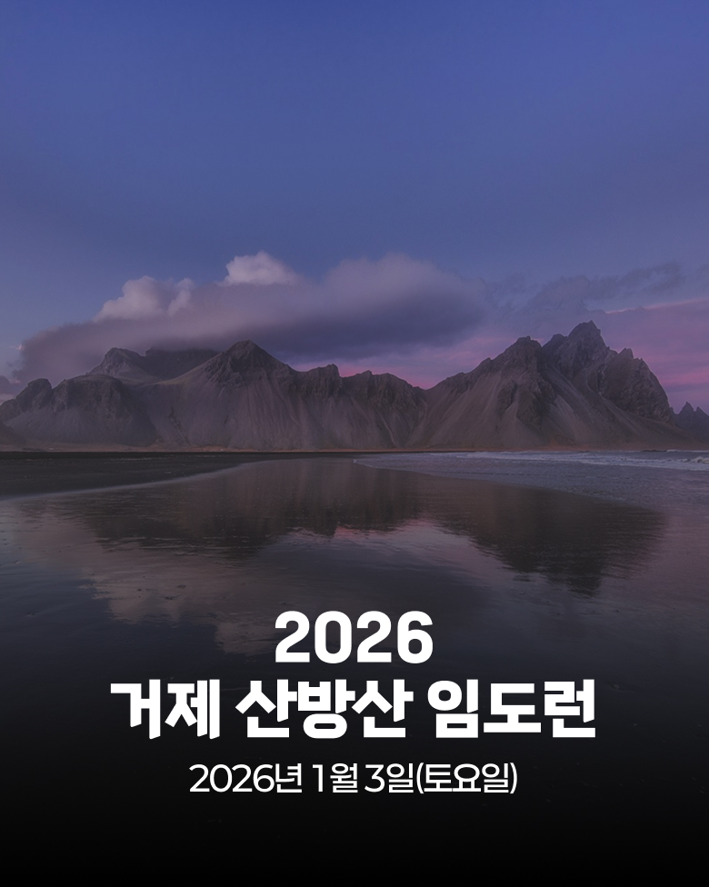 거제 임도런 시리즈는 매년 새해맞이 이벤트로 진행되는 트레일러닝 축제입니다. 2025년에는 계룡산임도런을 성황리에 개최했으며, 2026년에는 거제의 금강산이라 불리는 산방산에서 두 번째 시리즈를 이어갑니다.